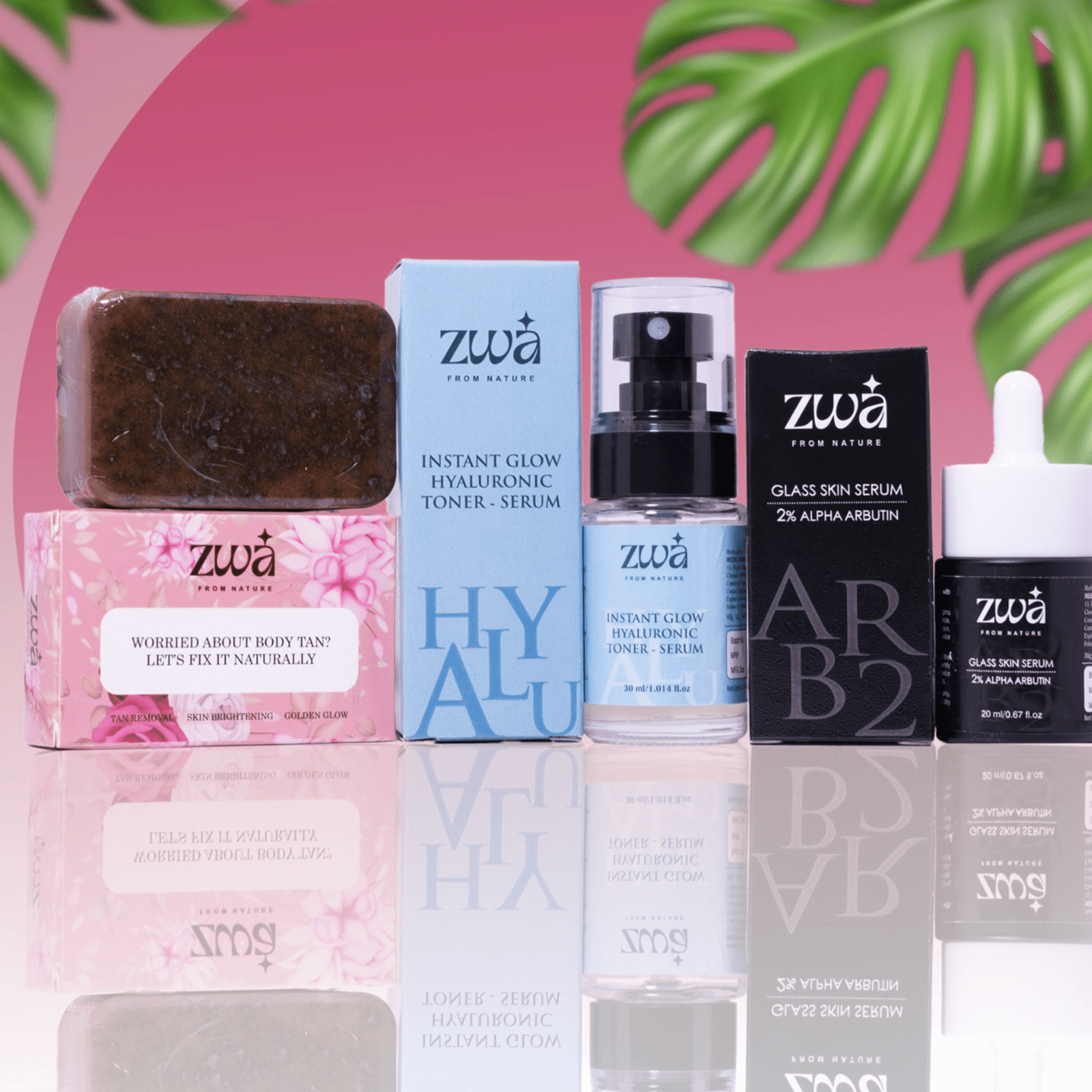 ZWA Skin Reset Ritual is a complete skincare combo designed to cleanse, hydrate, brighten, and restore your skin’s natural glow.